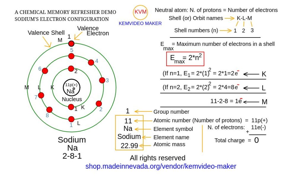 A chemical memory refresher demo video for sodium’s electron configuration