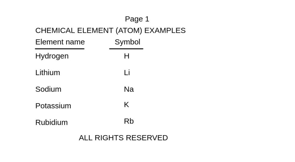 Vide0 1: Hydrogen, Lithium, Sodium, Potassium, Rubidium