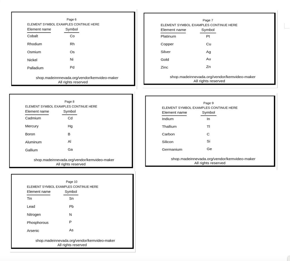 In this video, you will find 5 mini videos in 1, you will find the chemical symbols and their pronunciation.