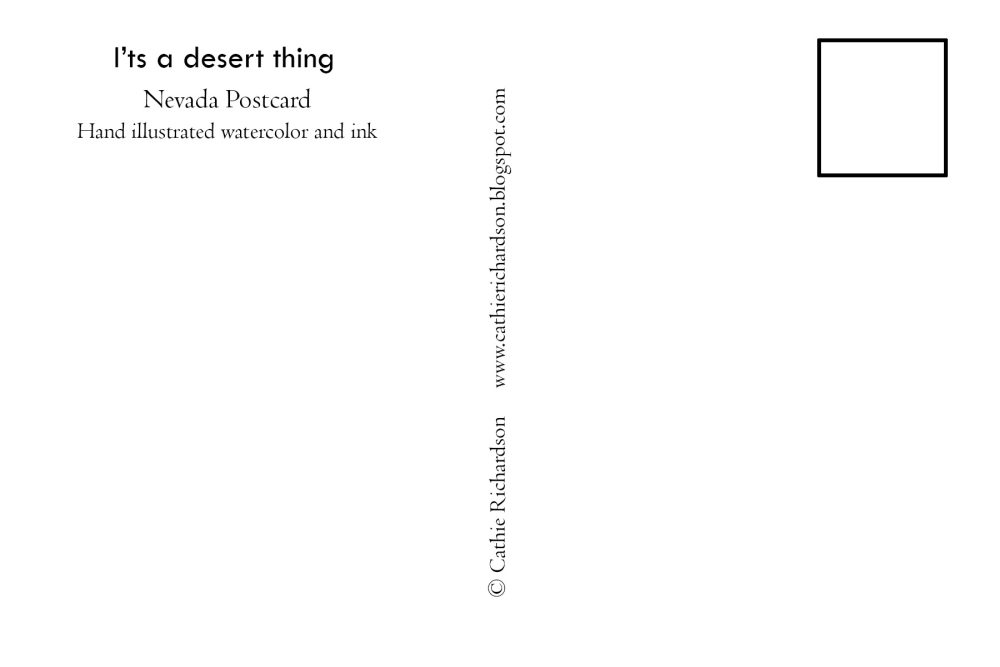 My latest postcard designs with Nevada themes including “It’s a desert thing”, “chasing sunsets”, and Nevada initials with hand drawn/painted watercolor and ink desert illustrations.