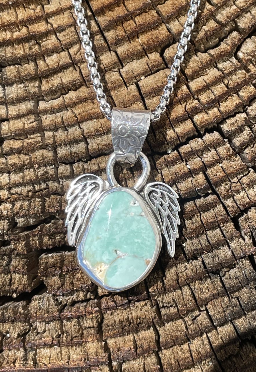 Broken Arrow Turquoise/ Variscite Pendant with silver Angel Wings